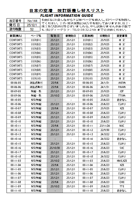 追録第144号の改定内容は以下の通りです。送付枚数は、計52枚(差替リストを含む)になります。