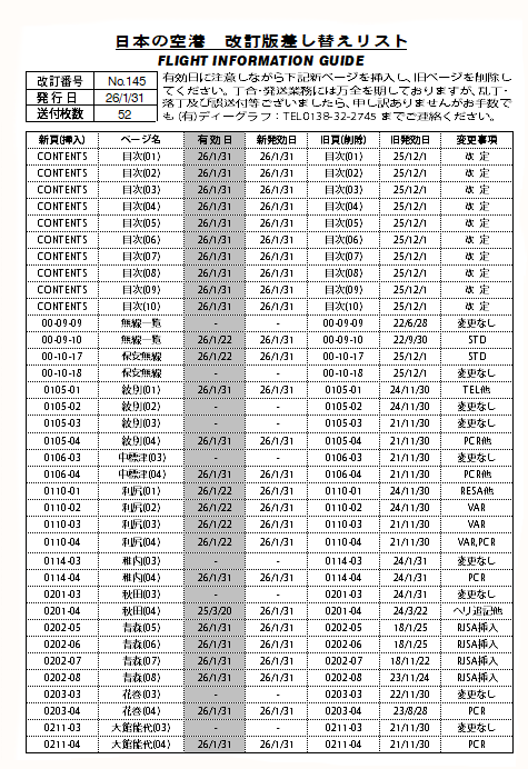 追録第145号の改定内容は以下の通りです。送付枚数は、計52枚(差替リストを含む)になります。