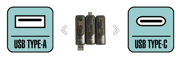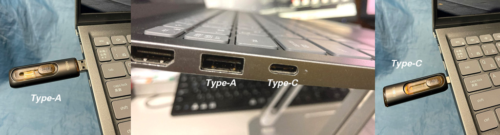 - このUSBは、OTG仕様ですので”Type-A”と”Type-C”の双方でご使用になれます。Windowsタブレットなどでの”USBホスト変換アダプタ”は必要ありません。スライド式のUSBにて簡単に切り替えることができます。